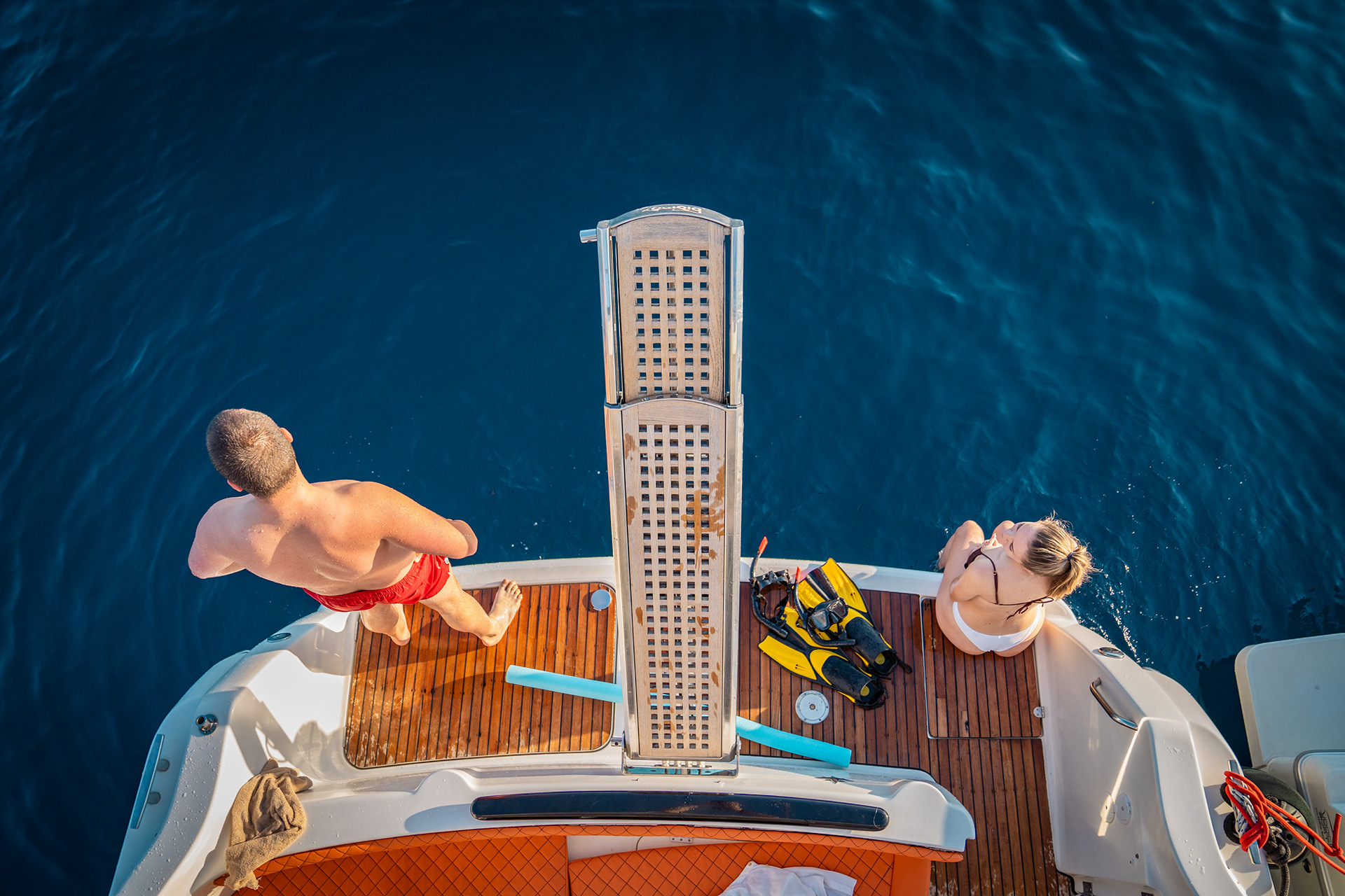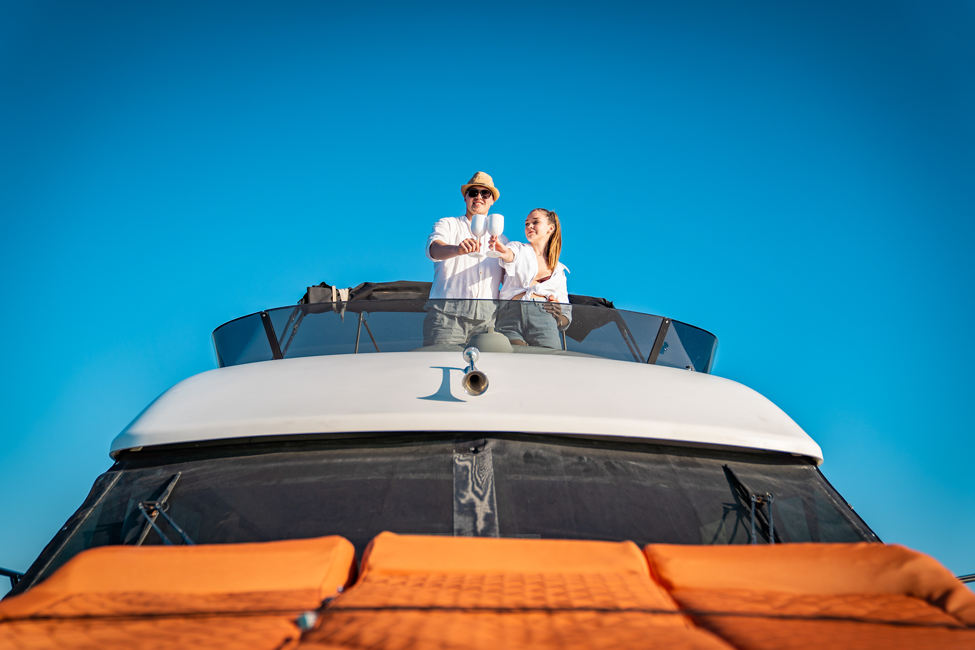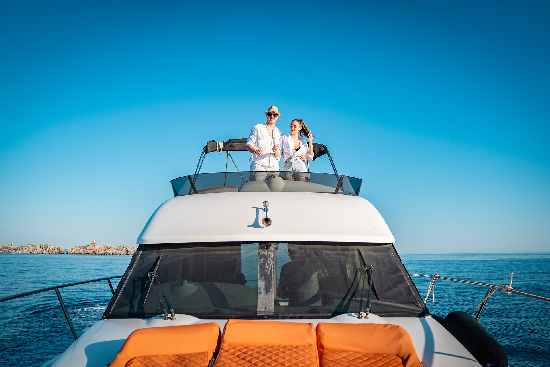 Vrijeme nam je donijelo laganu izmaglicu, ali mirno more i dobra energija nadoknadili su sve. Usredotočili smo se na stvaranje vizuala koji odražavaju atmosferu koju ova jahta pruža opuštenu, profinjenu i savršenu za krstarenje Jadranom.